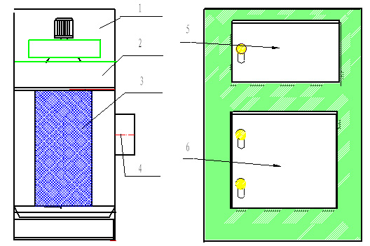 本設(shè)備采用聚脂纖維濾芯過(guò)濾的方法,每個(gè)濾芯的過(guò)濾面積10-15㎡,根據(jù)處理風(fēng)量的需要可以增加濾芯的數(shù)量,濾芯的拆裝維修不需要工具,濾芯使用周期為1年--2年。