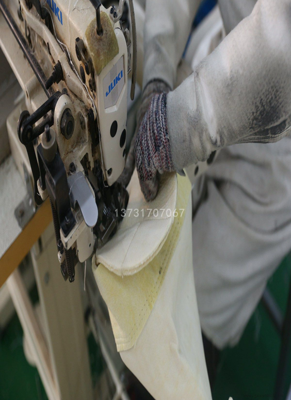 除塵濾袋縫制,要據(jù)除塵布袋袋口直徑、長度不同,合理裁剪針刺氈濾料,袋口袋底領(lǐng)做加強保護層處理,濾袋專用三針六線縫紉機或濾袋自動縫紉機集合高強度耐腐蝕三股縫紉線精密成袋。