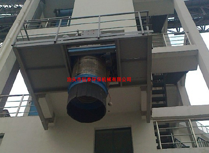 伸縮溜管采用雙層套管結(jié)構(gòu),由溜筒和防塵罩構(gòu)成。溜筒內(nèi)通過物料,防塵罩外套在溜筒上,期間行程吸塵腔。無塵伸縮溜管底部將設(shè)料位傳感器和防塵群罩。料位傳感器將設(shè)在外側(cè)或內(nèi)側(cè),防塵群罩將采用分塊重疊式。在裝車過程中料位傳感器接觸物料后,無塵伸縮溜管將及時(shí)提升使料頂與堆積的物料始終保持一定距離。防塵罩能罩在料堆上,以保證吸塵效果,防止粉塵外溢。溜筒將采用附有聚氨酯耐磨襯板的鋼板制成,防塵罩采用防靜電柔軟強(qiáng)度大的化纖材料制成。防塵罩內(nèi)將設(shè)置支承骨架,既可上下伸縮,又可保證氣流通暢。伸縮溜管升降自如,無阻滯現(xiàn)象;在伸縮溜管底部將至少設(shè)3個(gè)吊點(diǎn),以保證升降機(jī)構(gòu)帶動伸縮溜管平穩(wěn)升降。伸縮溜管外形尺寸圖/外伸縮防塵罩圖片