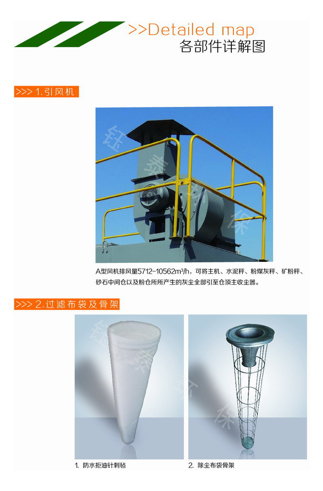 YT24倉頂除塵器主要應(yīng)用于筒倉頂部進(jìn)行收塵處理,是根據(jù)水泥、粉煤灰、石灰等各種粉狀物質(zhì)的粒徑,設(shè)計(jì)其除塵器濾袋的O通過直徑并考慮附著力作用給濾袋孔徑的影響,使之完全可以滿足各類粉狀物質(zhì)的過濾要求。