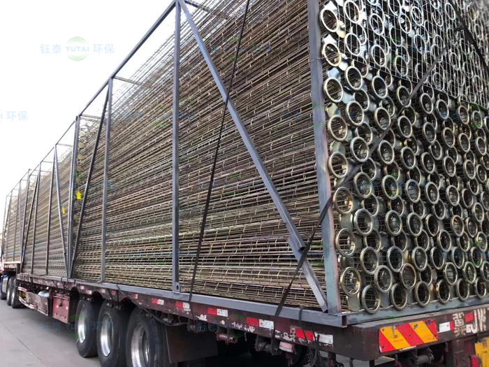 1、除塵器骨架采用圓型結(jié)構(gòu),袋籠的縱筋和反撐環(huán)分布均勻,并有足夠的強(qiáng)度和剛度,防止損壞和變形,頂部加裝冷沖壓短管,用于袋籠的垂直及保護(hù)濾袋口在噴吹時(shí)的磨損。